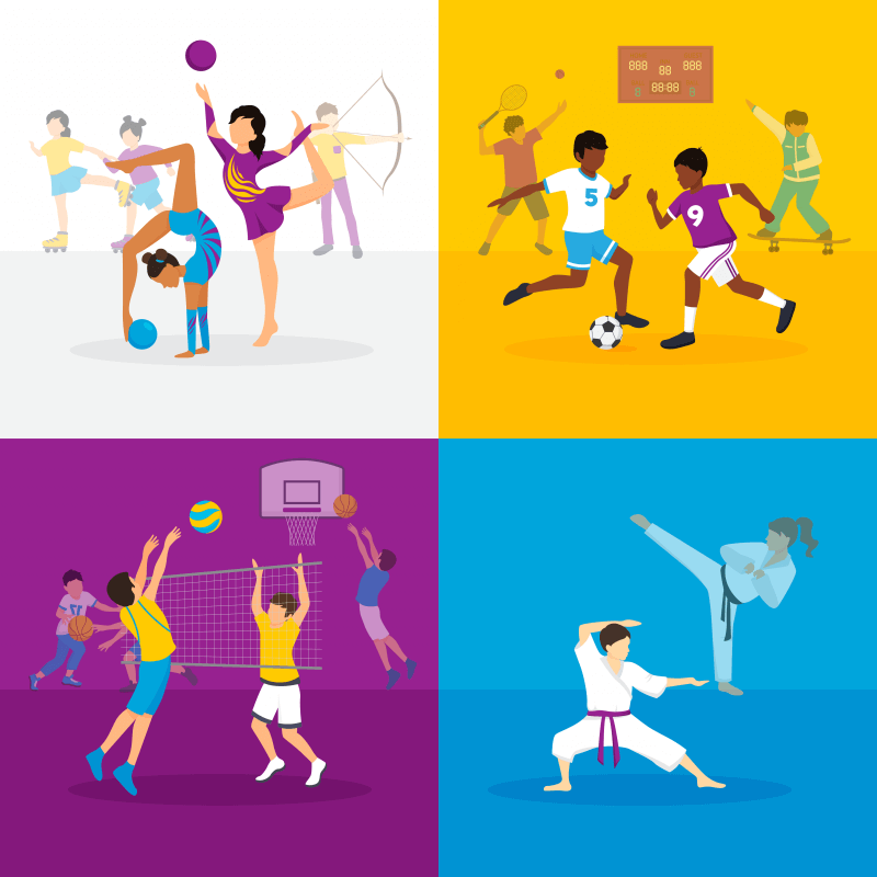 • Team Sports: Football, basketball, baseball, and others can help children to work on coordination, strength and teamwork.
