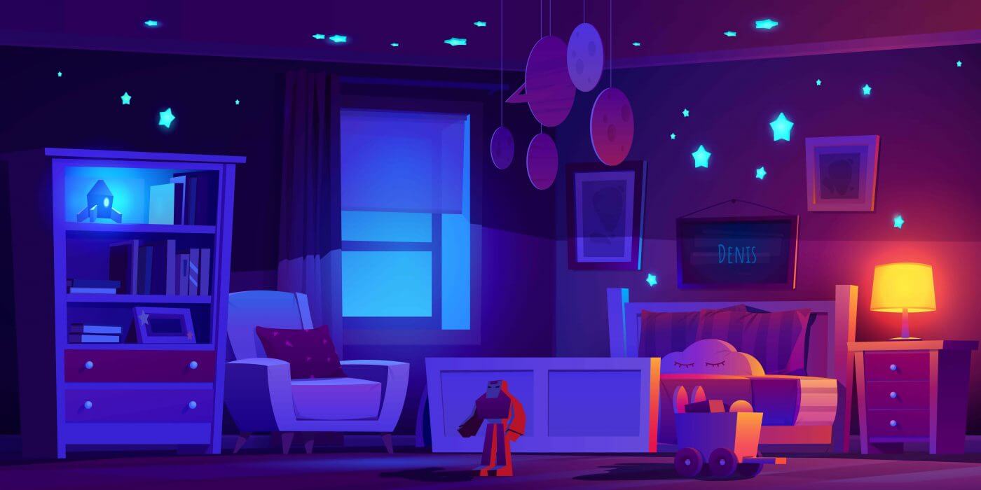 - Lighting: The room should be well-lit during the day and dim at night. A darker room during nighttime induces the body to produce melatonin, the sleep hormone, which promotes restful sleep. In the morning, introduce gentle, natural sunlight to stimulate your child’s wakefulness.